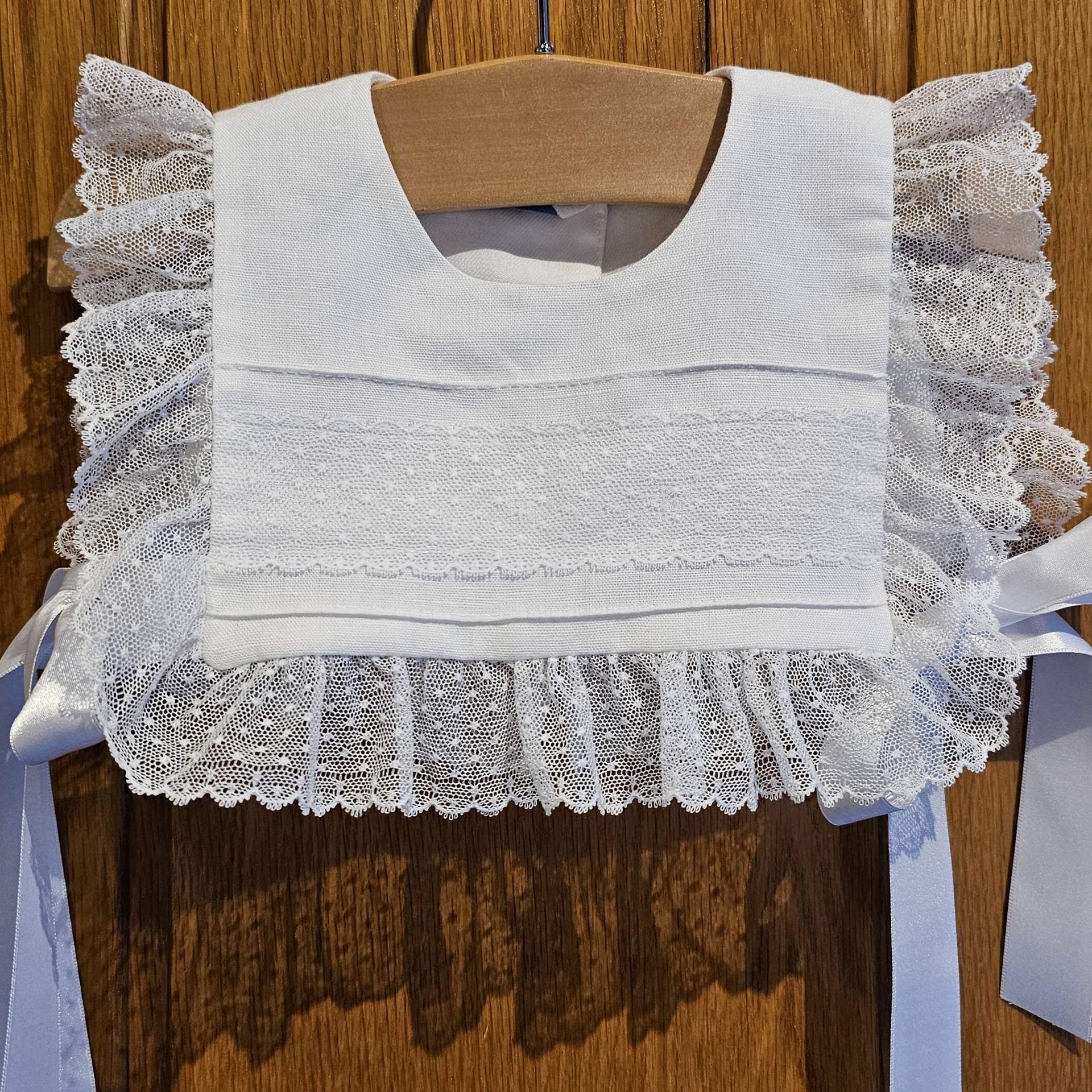Home Babete Nenúfar Babete Nenúfar 38,00 € Desconto de %. IVA incluído. Comprar Contactar Adicionar à wishlist Babete em linho de algodão com renda valenciana. Pode ser feito em linho branco ou meio branco (colocar nas observações) Partilhar
