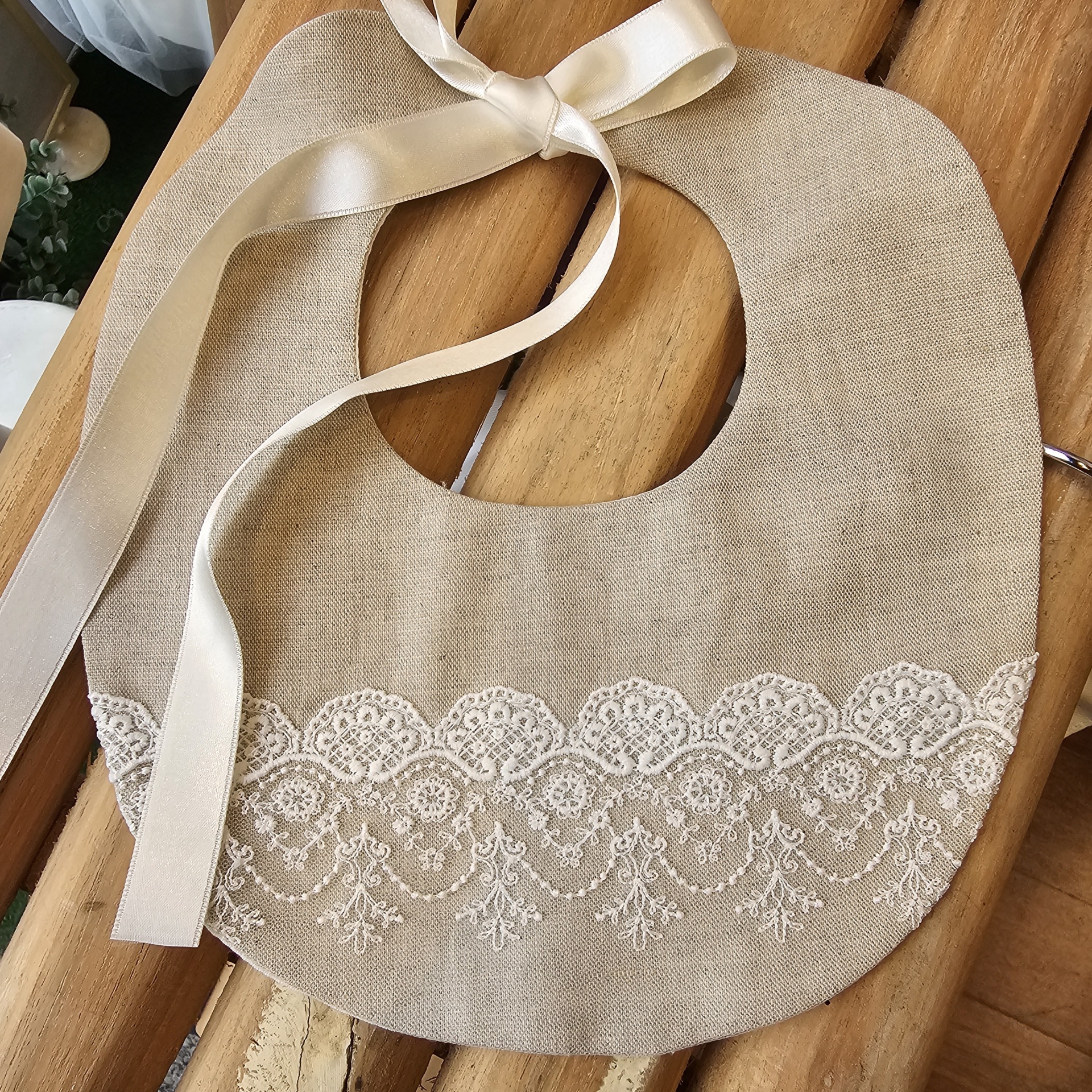Home Bebé Babete Panna Babete Panna 27,00 € Desconto de %. IVA incluído. Comprar Contactar Adicionar à wishlist Babete em linho de algodão meio branco com renda Partilhar