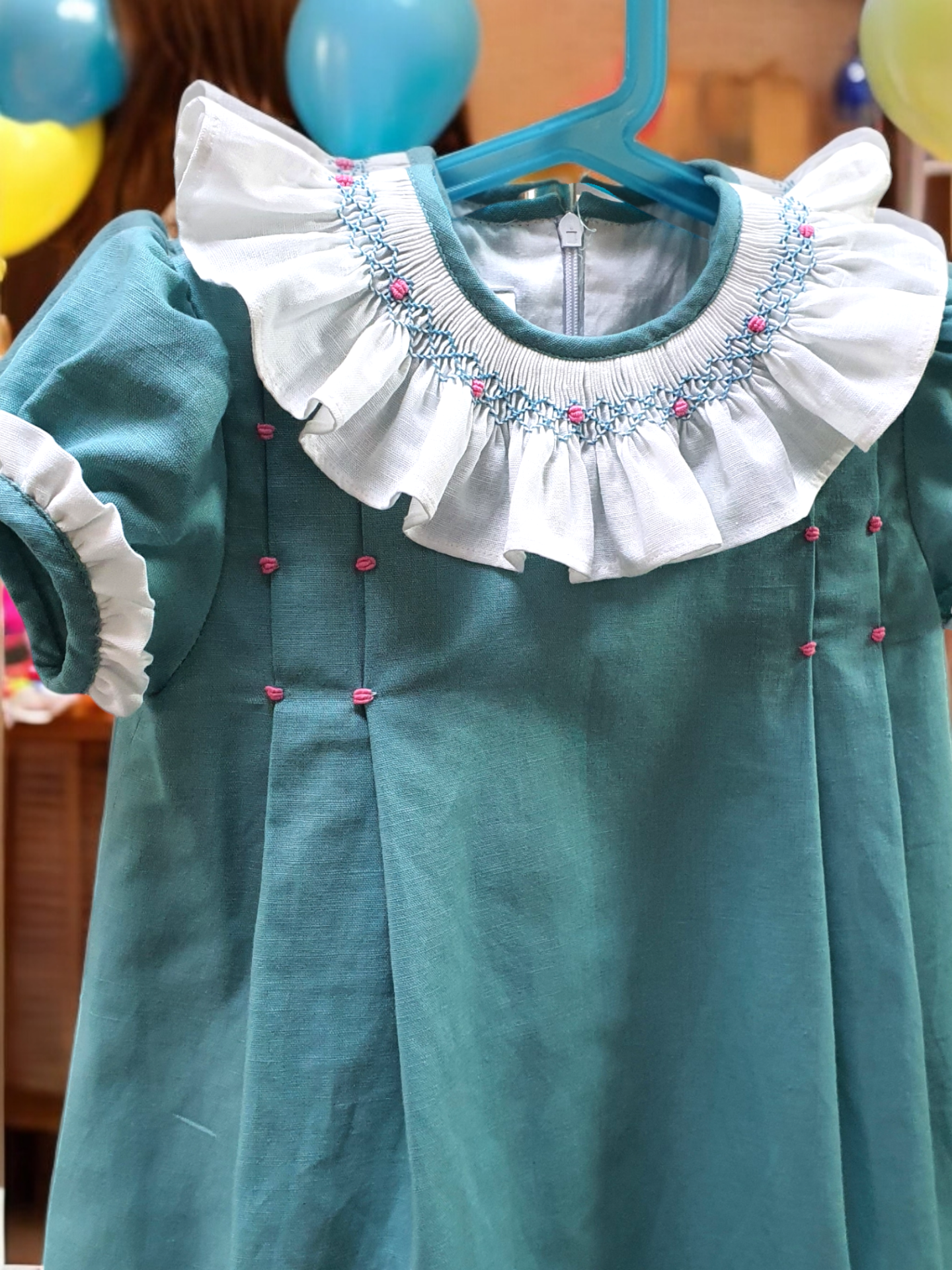 Home Smocks/Favos Vestido Turquesa Vestido Turquesa Tamanho 12m 18m 2a 3a 4a 6a 8a Medida de peito 75,00 € Desconto de %. IVA incluído. Comprar Contactar Adicionar à wishlist Vestido em linho de algodão com smocks bordados à mão de forma artesanal. Partilhar